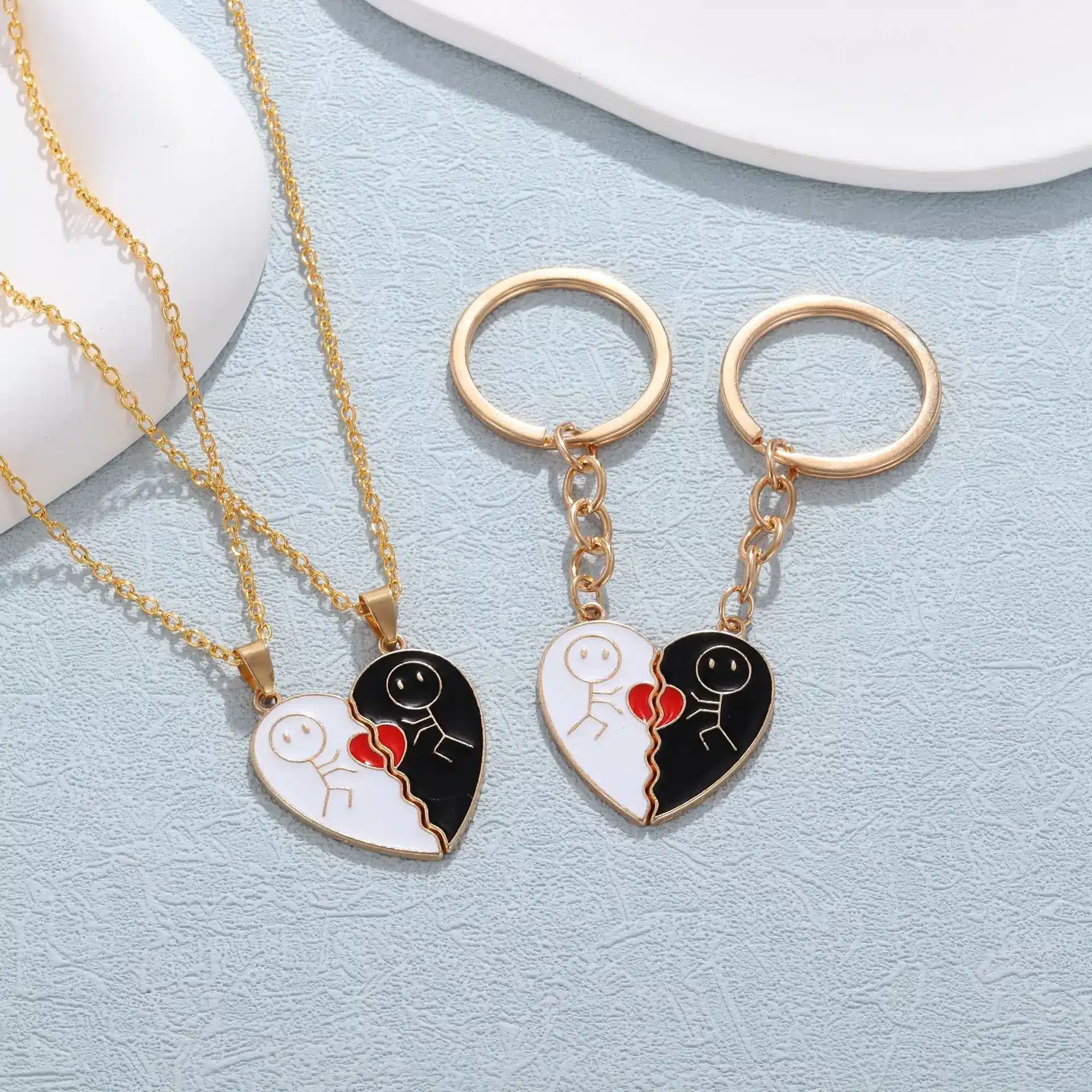 🥇 #1: Fashion Stickman Heart Charm Couple Magnetic Necklace - $1.43