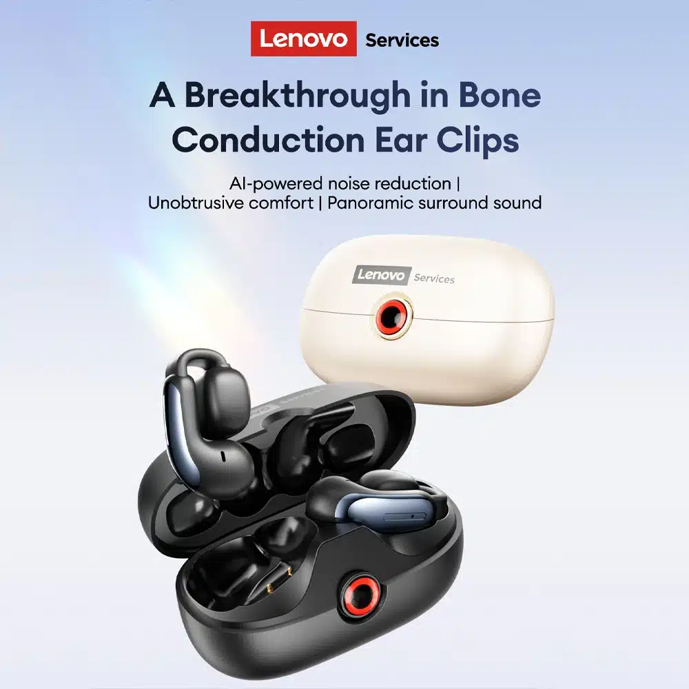 Tired of earbuds that block out the world entirely? The Lenovo LES-108 Bone Conduction TWS Ear Clips Earphones offer a unique listening experience th...